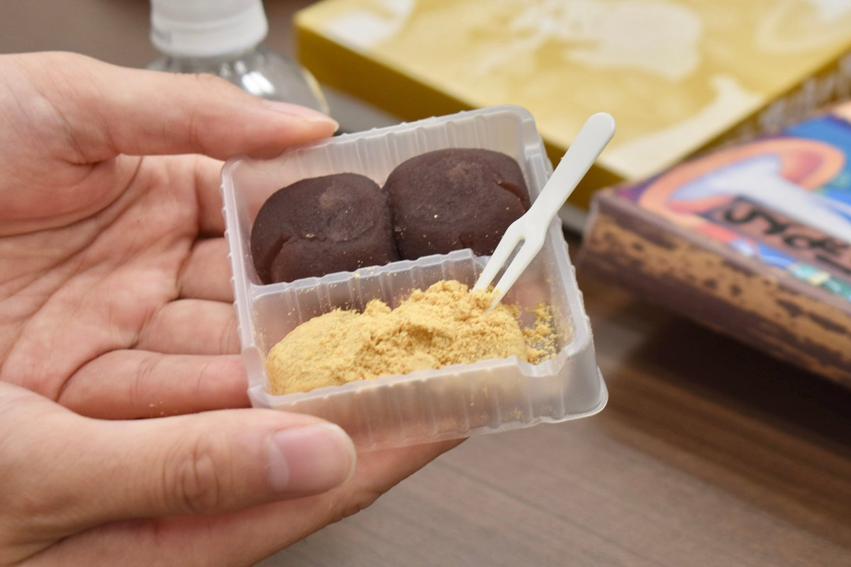 成岡:そうなんです。きな粉餅にはもちろんすでにきな粉がかかってるんですけど、別袋のきな粉も。これはこし餡のお餅にかけてもいいんですが、僕は“追いきな粉”派。