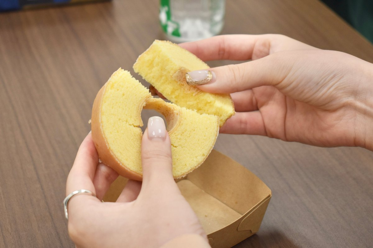 篠﨑:温かいのはもちろんだけれど、もっとフワフワしてるの!ちなみに滋賀の結婚式でもこのバームクーヘンは引き出物の定番。しかも普通のよりサイズが大きいものをもらうことが多いから、家族の誰かが結婚式でこれをもらってくると3日後くらいまで朝ごはんはバムクーヘンになりがち(笑)あとローカルネタとしては結婚式で「ケーキ入刀」の代わりに「バームクーヘン入刀」なんてのも(笑)
