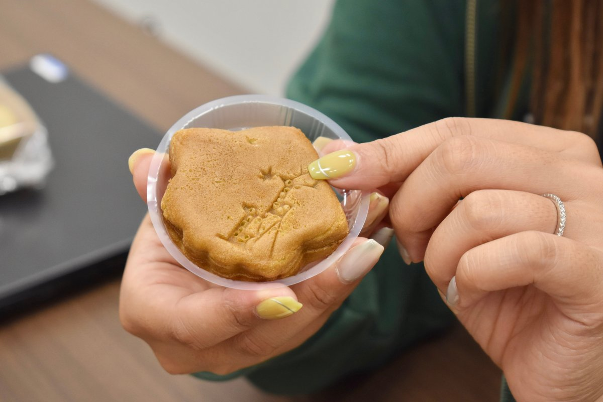原屋:普通の「もみじ饅頭」はカステラ生地のような食感があると思うんですが、これは弾力があってモチモチなんです。
