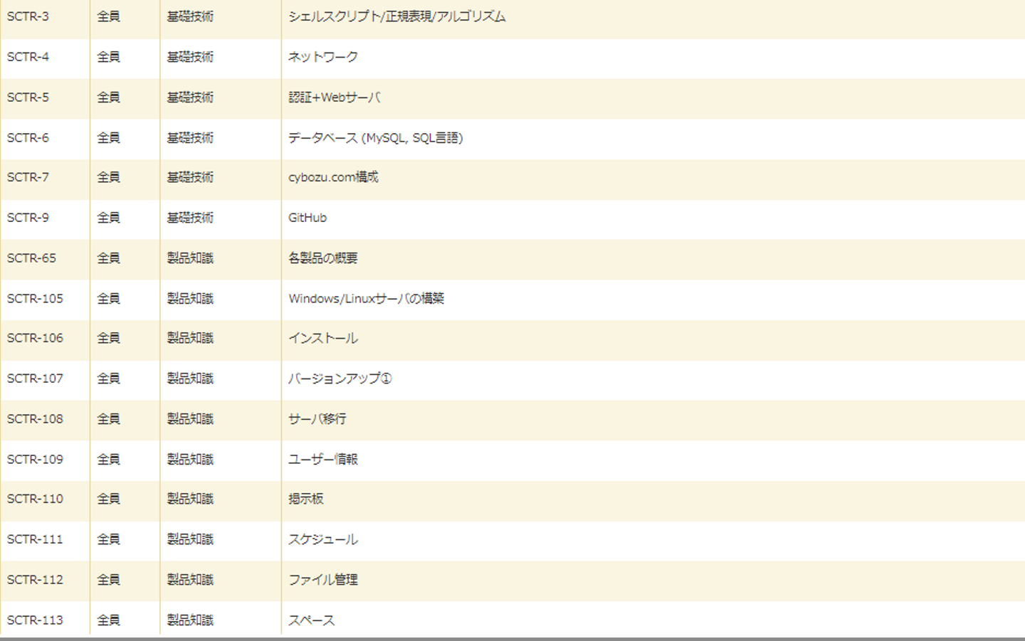 講義科目として代表的なものをいくつか挙げると以下のような科目があります。これらの科目は日々の業務でも特によく利用するものや知っておかないといけないもので構成されています。