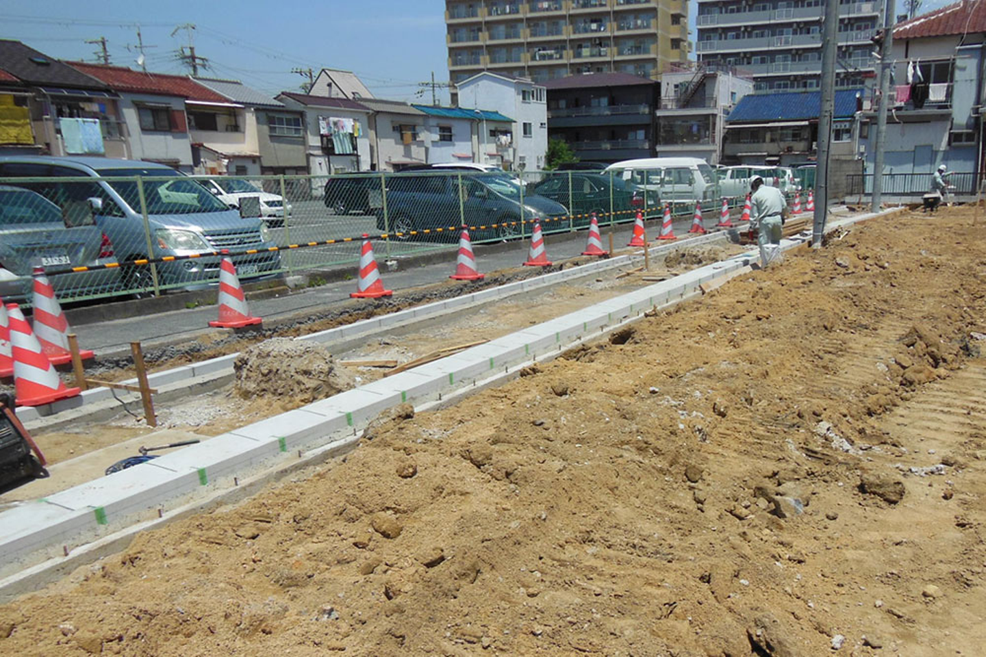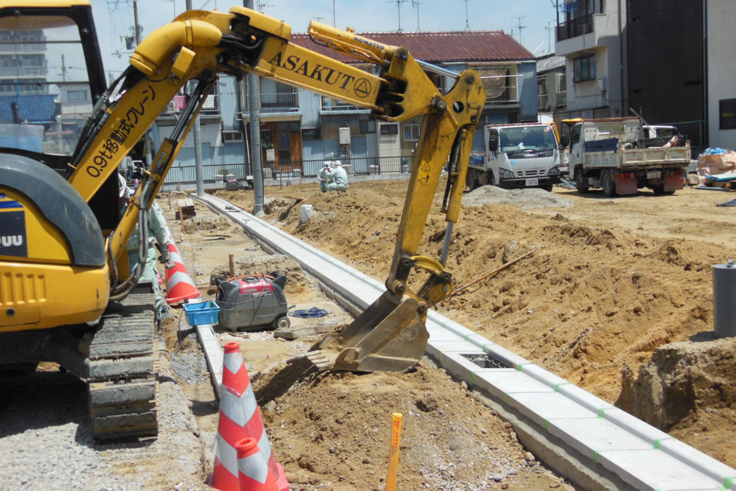 道路工事は敷地内の整地の他に、側溝の工事も含まれます。