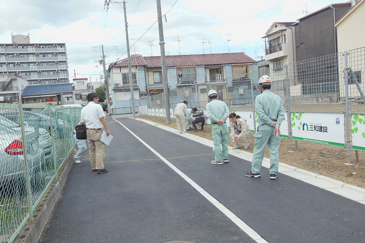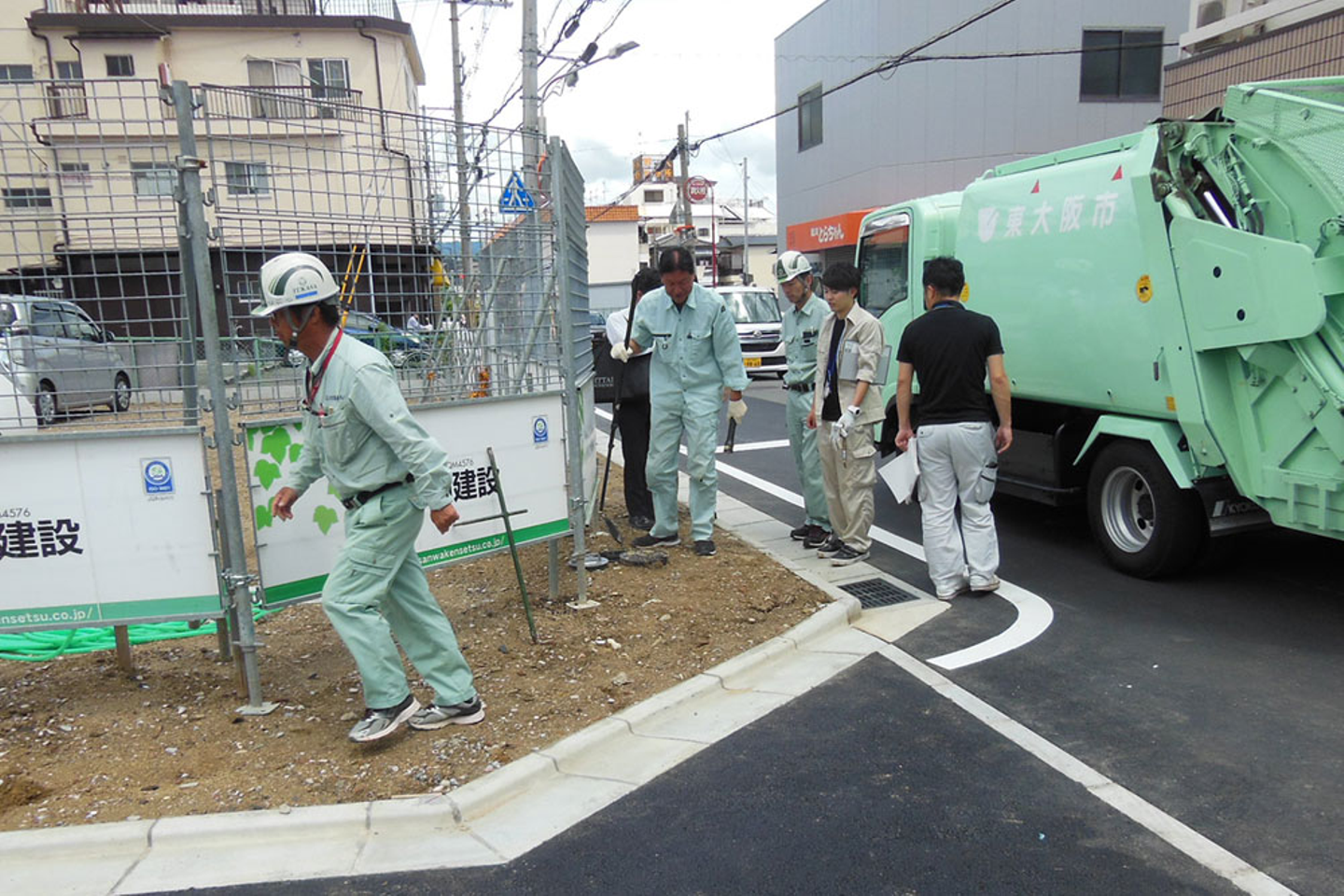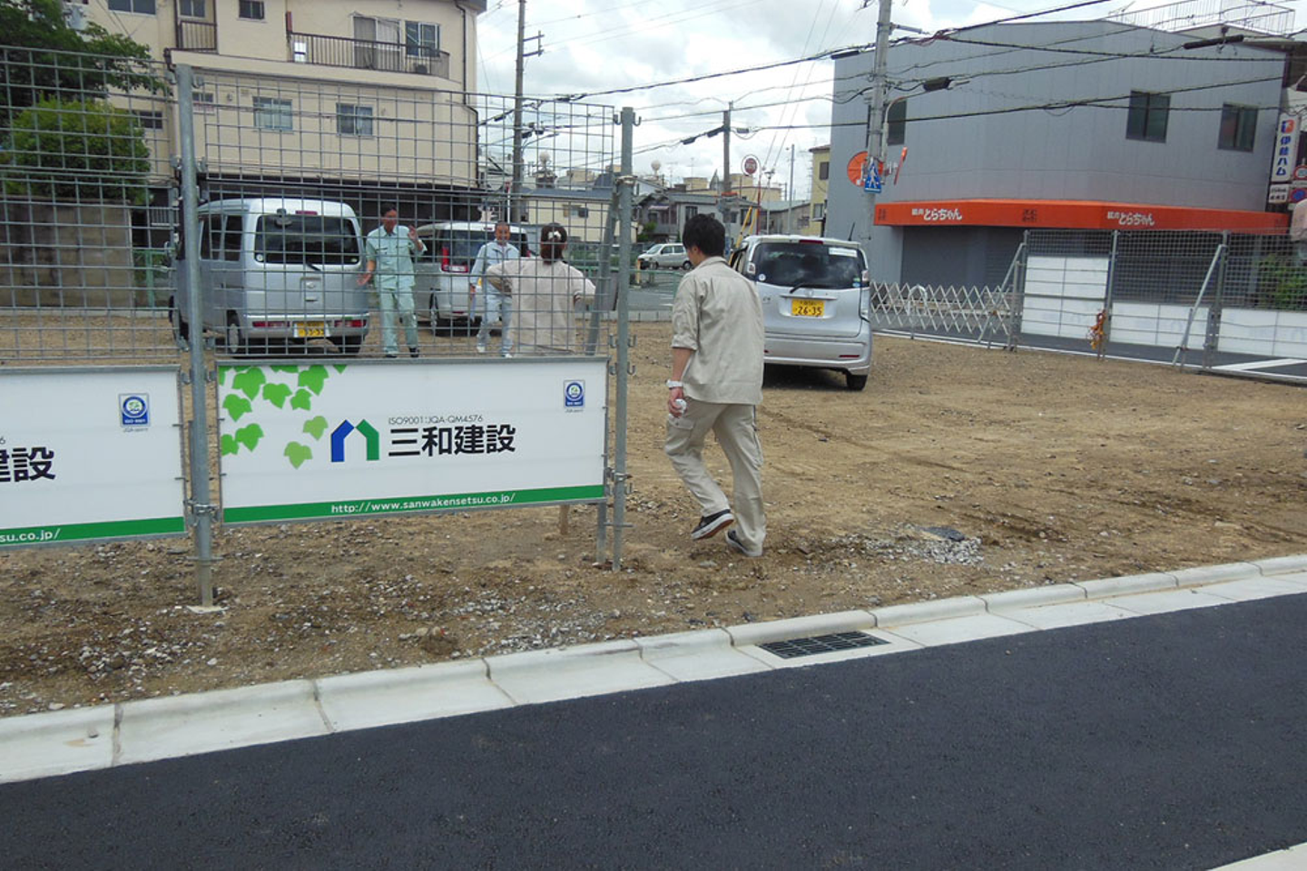 綺麗になった土地の写真を撮りながら待っていると、建設会社の方や行政の方、検査を行う業者の方が続々と来られました。