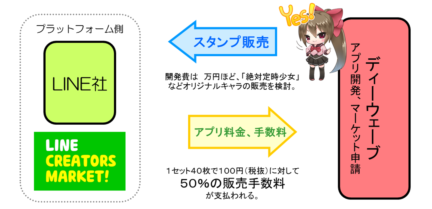 ①ロールモデル = LINEでスタンプ販売の市場が確立されていた。
