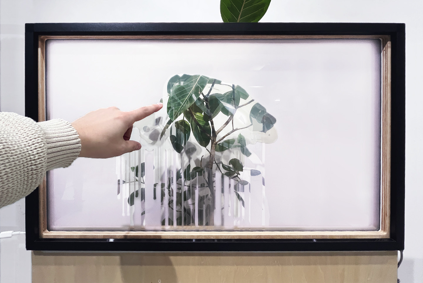 「結露した窓をガラスに指で落書きをする」といった誰もがやったことのある体験を、透明ディスプレイを使って疑似体験ができるプロトタイプ。IMG SRCのR&D活動「μProto」の透明ディスプレイを使ったハッカソンをきっかけに生まれたアイデアです。