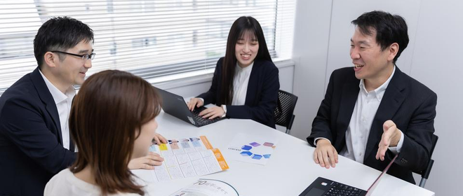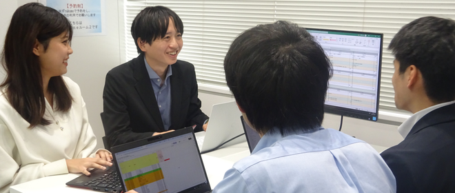 営業、エンジニアと部署や役職を問わず、距離が近いのも当社の魅力。より良いサービスを作るため活発に意見交換が行われています。