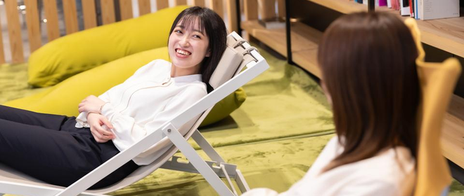 2020年にリニューアルした東京本社は仕切りのないフラットな作りで、部署や役職を超えたコミュニケーションを後押し。また、ビリヤード台や卓球台、ソファなどがあるリフレッシュエリアでは、休憩時間などに思い思いの時間を過ごしています。