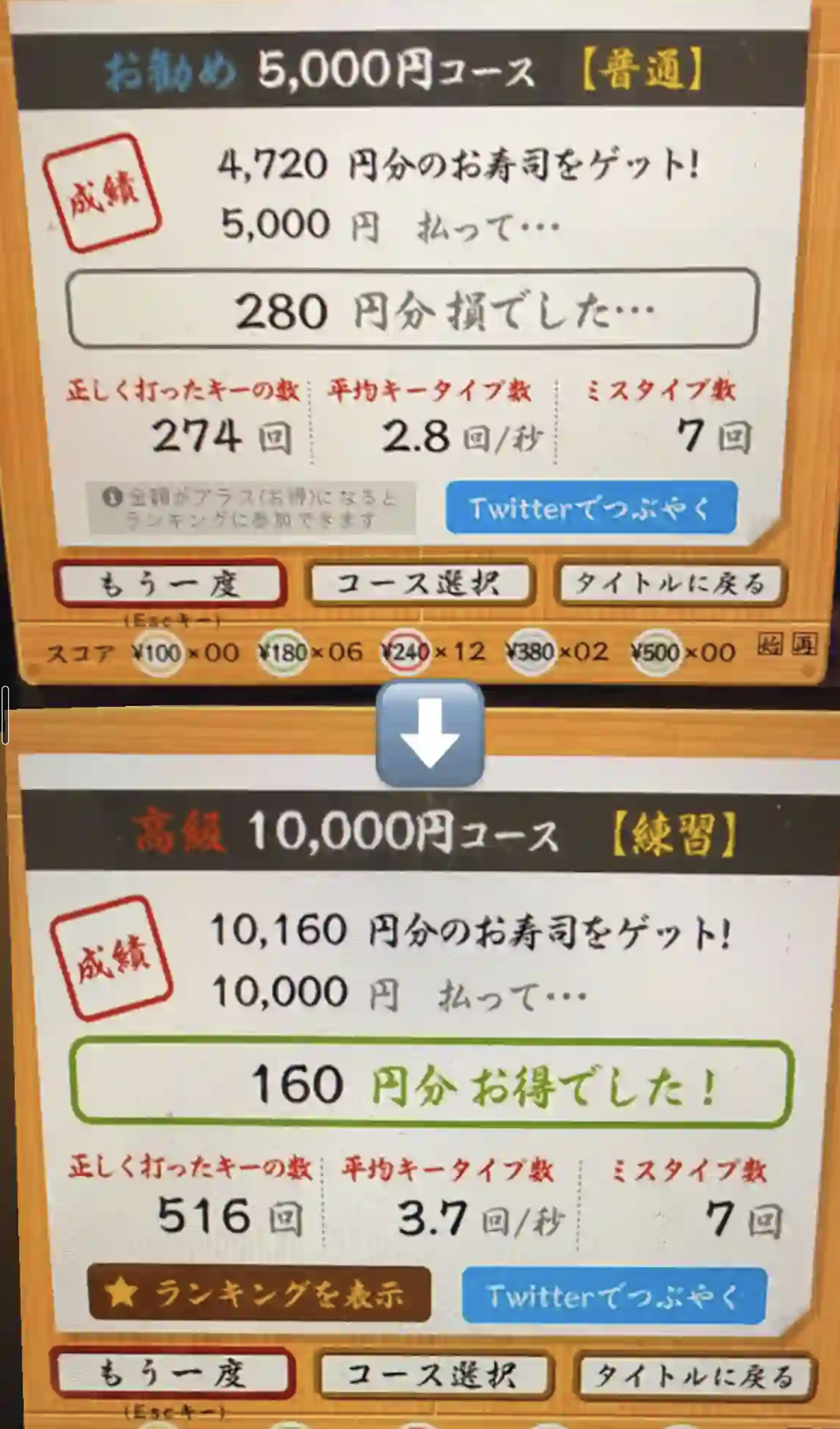 短期間で寿司打でのタイピングは基準値にもっていきました。