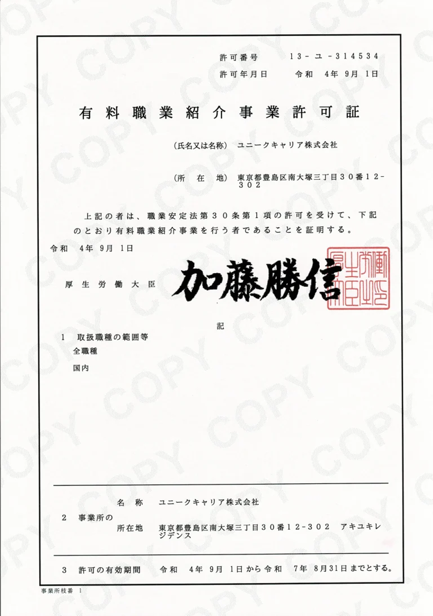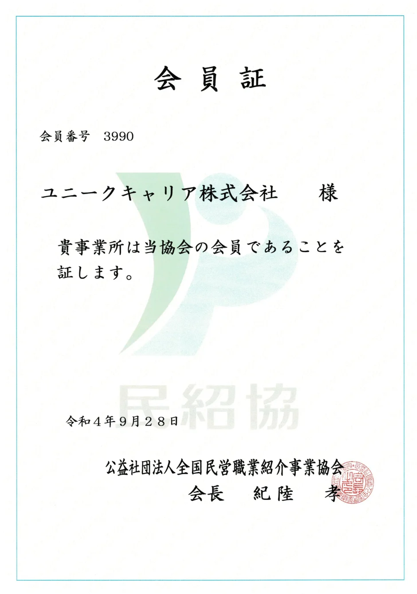 ユニークキャリア株式会社ではキャリアに関するメディア運営にあたり、有料職業紹介認可取得や人材に関連する協会加入により人材ビジネスにおける知見を深めています。