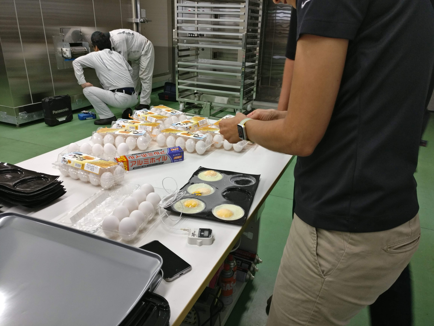 しかし、本国の工場への導入となると、テストで使用した小型の冷凍機ではなく、トンネルフリーザーが必要です。そこで、次のステップとして、冷凍機メーカーのところへ行って、トンネルフリーザーでテストをしよう!という計画を立てました。たまごを大量に買い占めて、木下(社長)が全てアテンド。みんなでせっせと1時間に300個ほどの目玉焼きを焼き続けるという、異例のテストをしました。