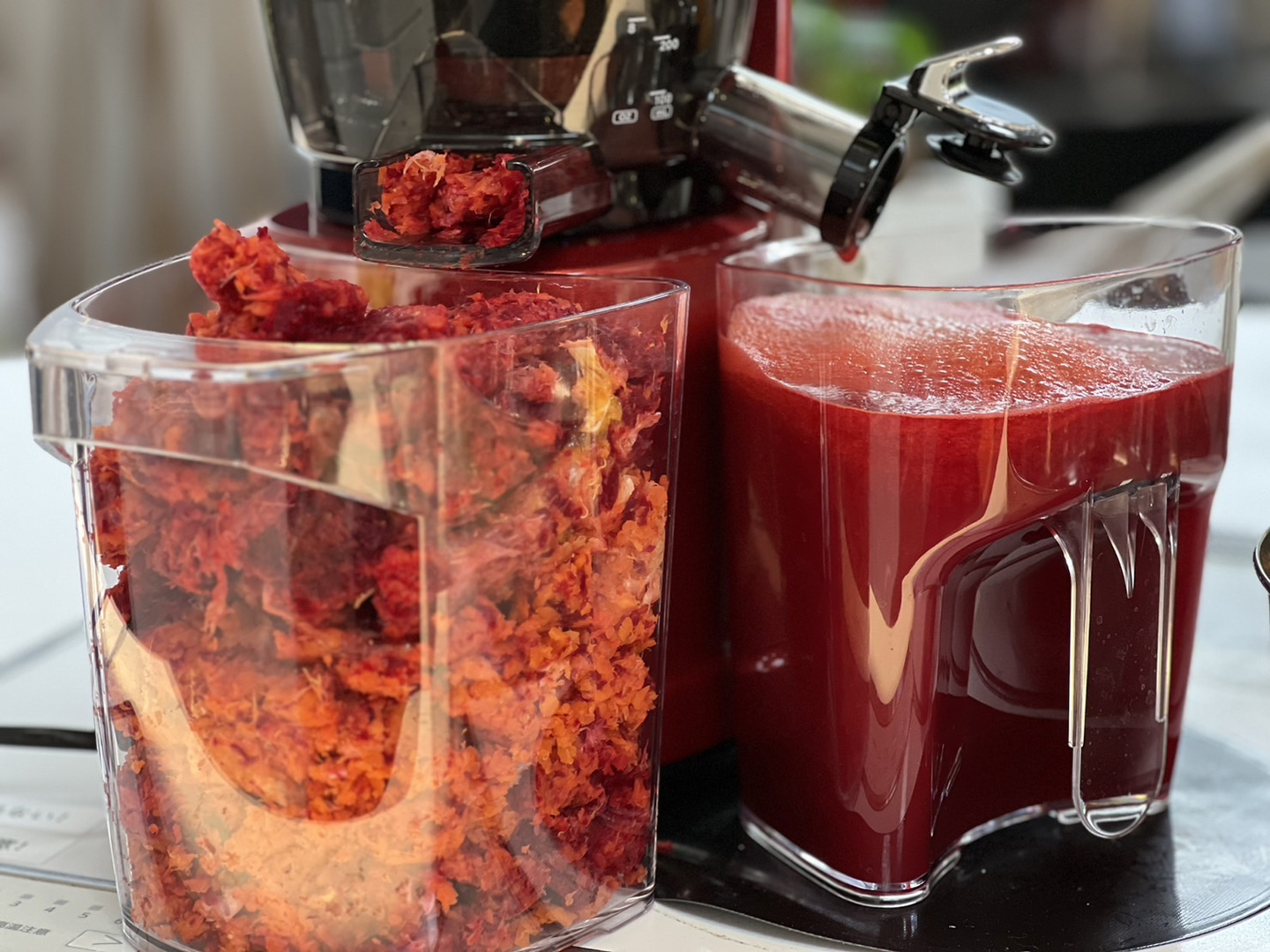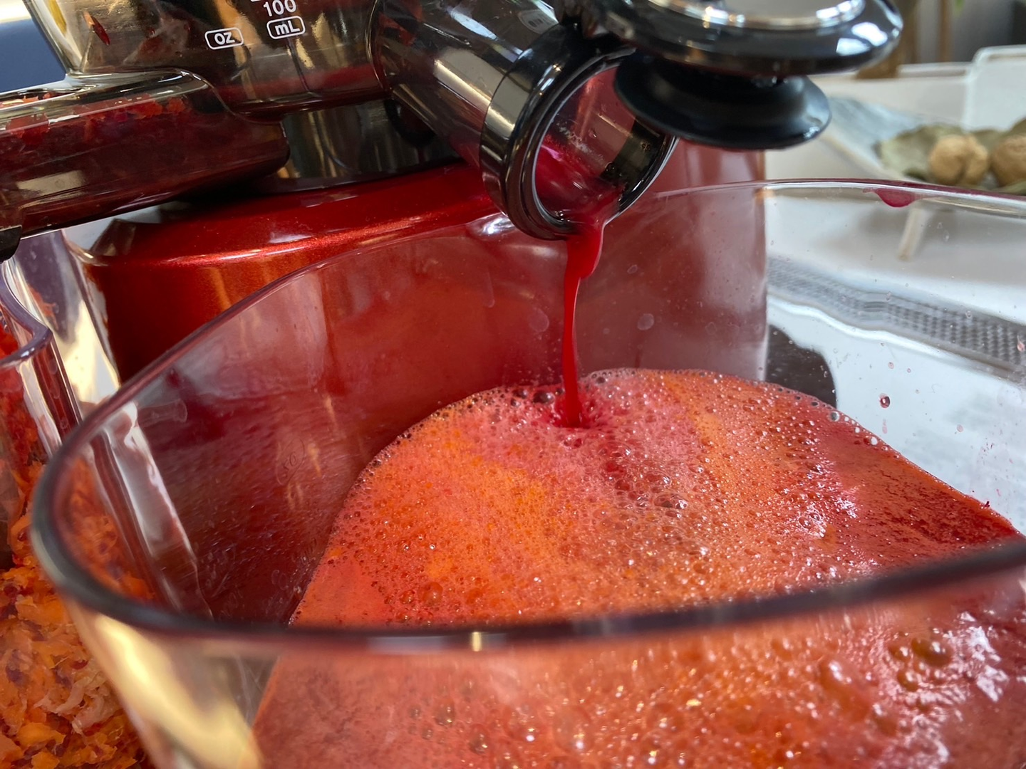 今回はビーツ、にんじん、不知火を使った色鮮やかなジュースでした🟥