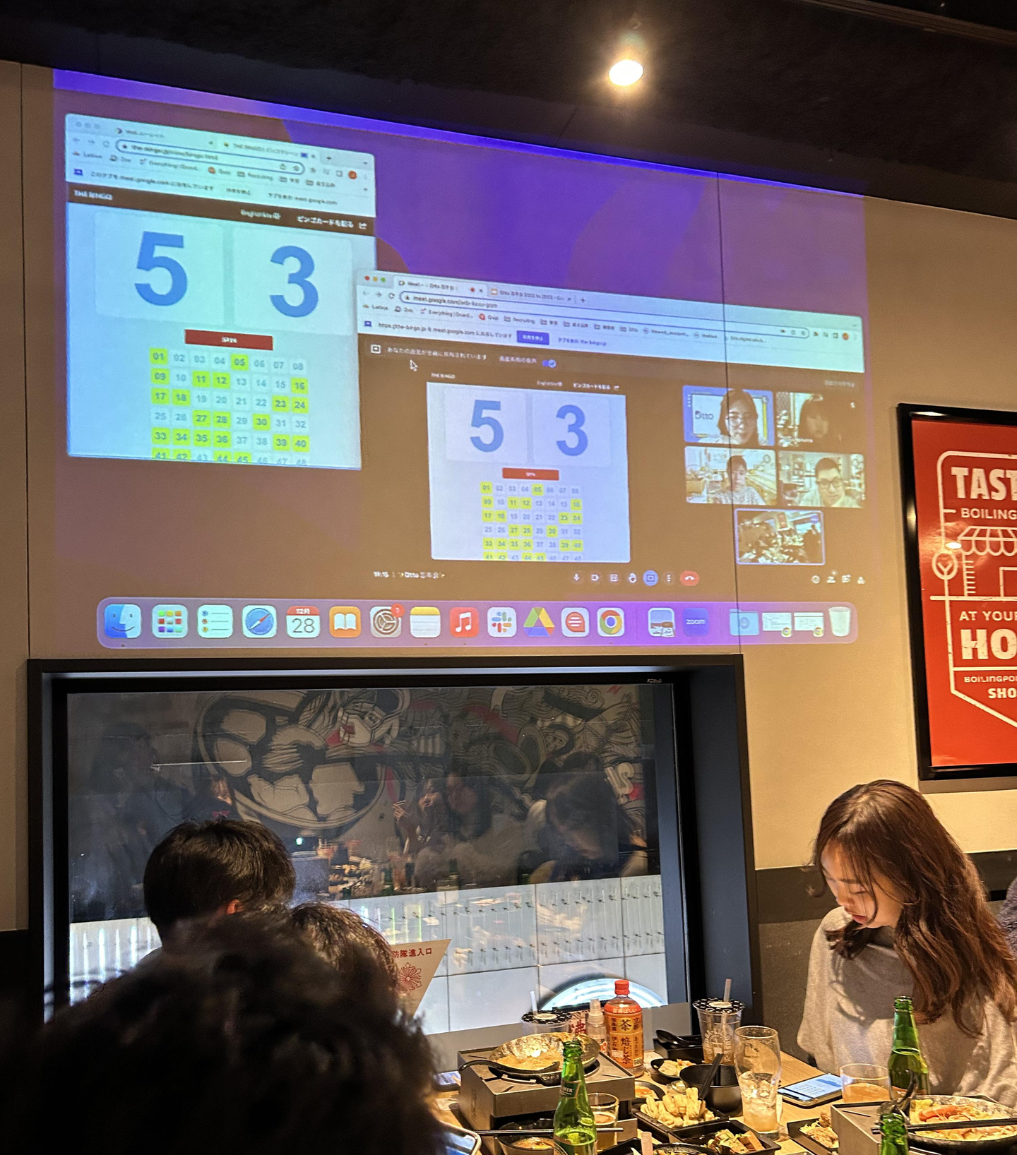 2021 年はコロナの影響もあり完全オンラインで行った忘年会ですが、2022 年はオフラインで開催することができました。