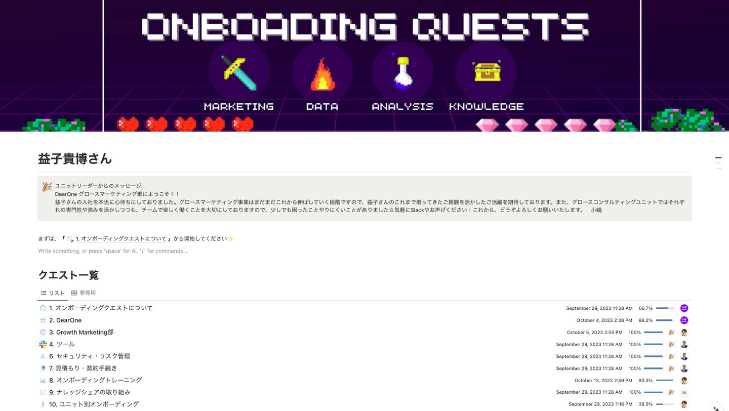 小嶋 こうした、健全な競争意識が生まれるのも、オンボーディングクエストの副次的な効果ですね。