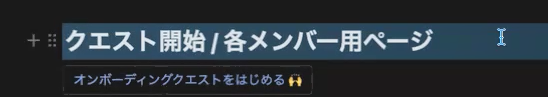 小嶋 新入社員の入社が決まると、「オンボーディングクエストをはじめる」というボタンを押すだけで、新入社員用の個別ページが作成できるようになっています。そこから、その人用に若干カスタマイズを行い、ページを完成させて入社初日を迎えます。