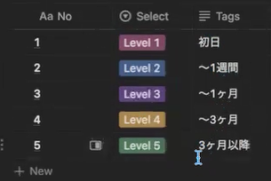 レベルはそのミッションを達成する目標時期を基に設定しており、Level1は入社初日、Level2は1週間以内というように、Level5は入社3ヵ月目以降に設定しています。