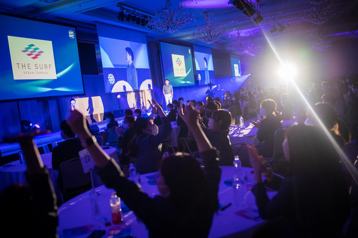 例年の全社キックオフでは年間成績優秀者の表彰や経営プレゼンテーションをメインに実施していますが、4月の対面型キックオフではこれらに加えて、コロナ禍で入社をしてきたメンバーにフォーカスしたコンテンツを実施しました。2020年、2021年の入社者は社員同士での繋がりを持つ機会が少なかったこともあり、顔や名前が一致しないという声も多かったため、同期やチームで自らをプレゼンテーションし、改めて社員全員でお互いを承認する時間となりました。また今回のキックオフのテーマ「ICHIGAN」にちなんで行った店舗対抗型のコンテンツも非常に盛り上がりました。