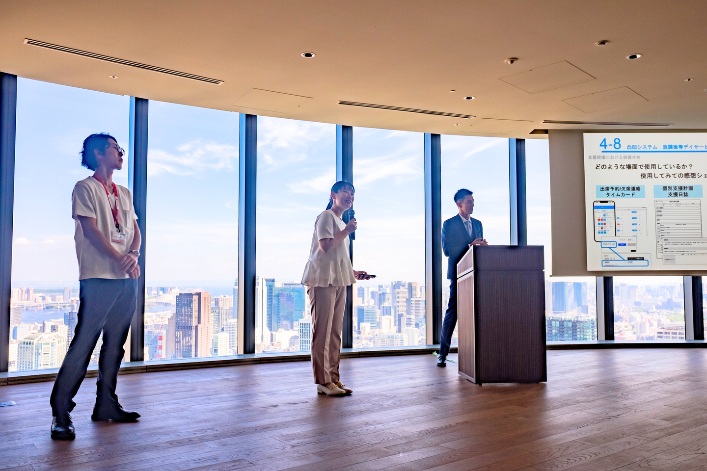 #左:澁谷さん・中央:諸永さん・右:松井さん(社長)の登壇シーン