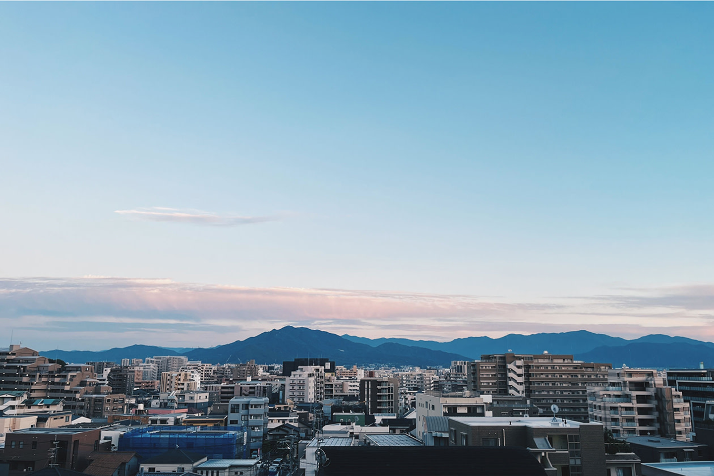 福岡に引っ越してから家から見える山の景色がとても気に入ってます。いつも休憩がてらベランダでぼんやりお茶を飲みながら息抜きをしています。子どもを産む前は、育児と仕事を両立できるかとても不安でしたが、今の環境があるおかげで仕事でもいろいろなチャレンジができ、とても楽しいです。