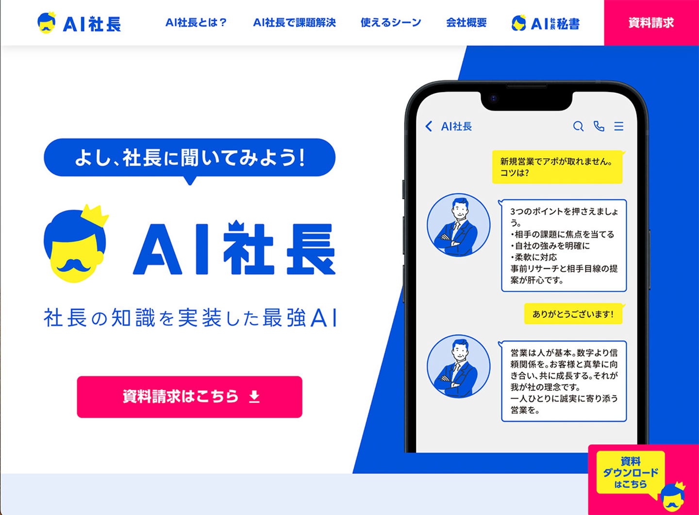 一言で言うと「社長の知識を実装した最強AI」サービスです。