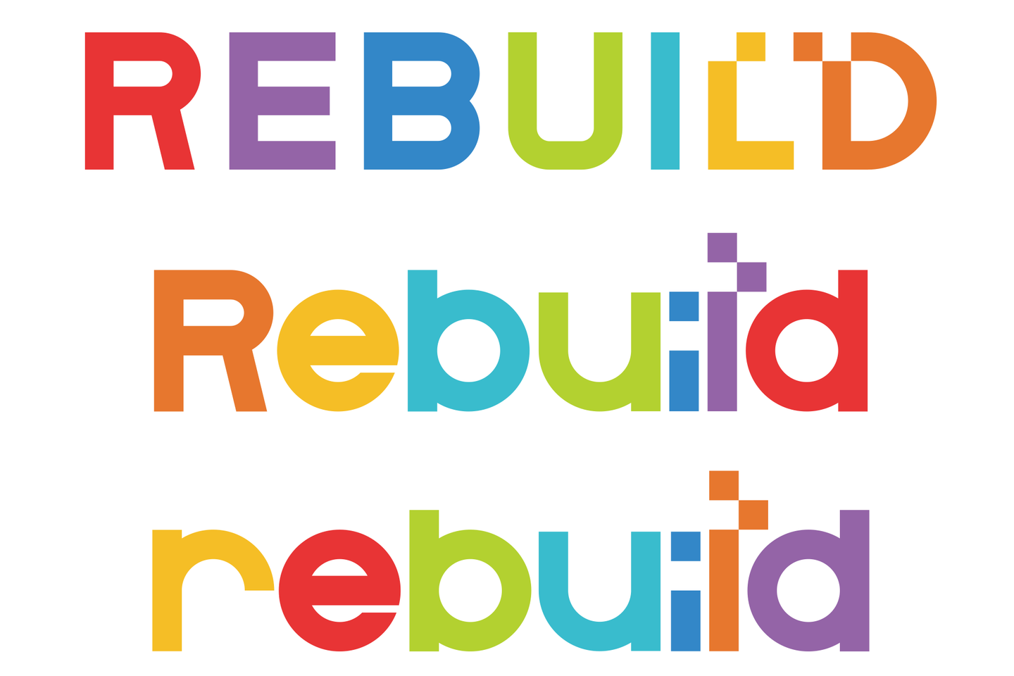 文字の配置にもREBUILDの意味合いを込めようと考えてみましたが、デザイン的にはオシャレになっても、肝心のREBUILDが伝わらなくなってしまいました。