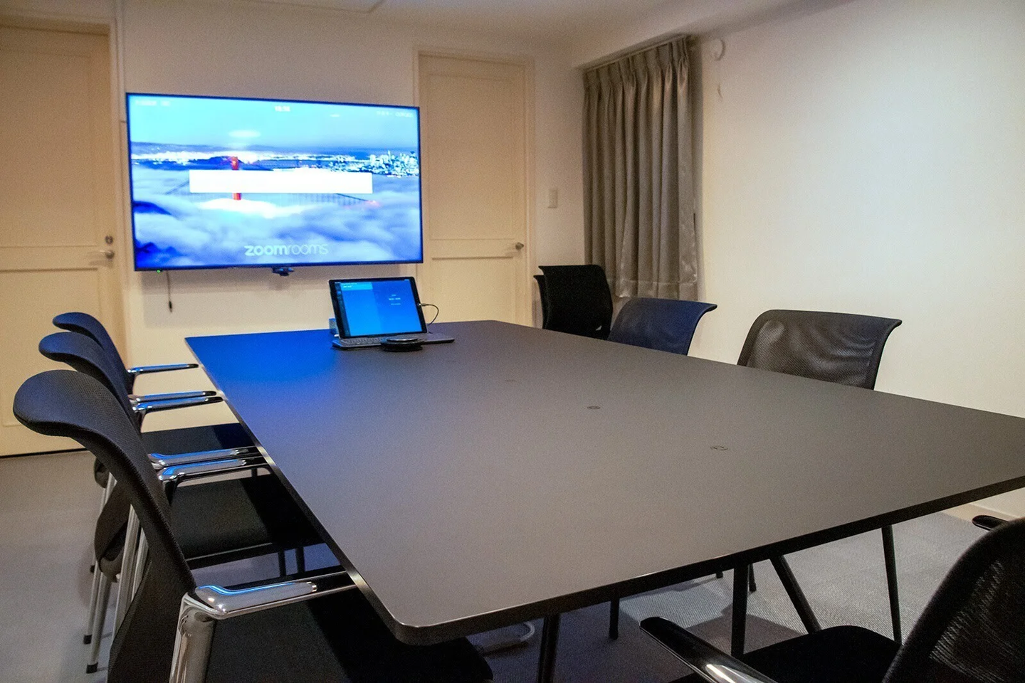 2つ目はビデオ会議サービスのZoomです。こちらもコロナ禍になってから、利用された方が多いのではないでしょうか。弊社では2016年ごろよりZoomを利用しており、オフィスの会議室には備え付けのiPadを用意して、Zoom Roomsが利用できるようにしています。