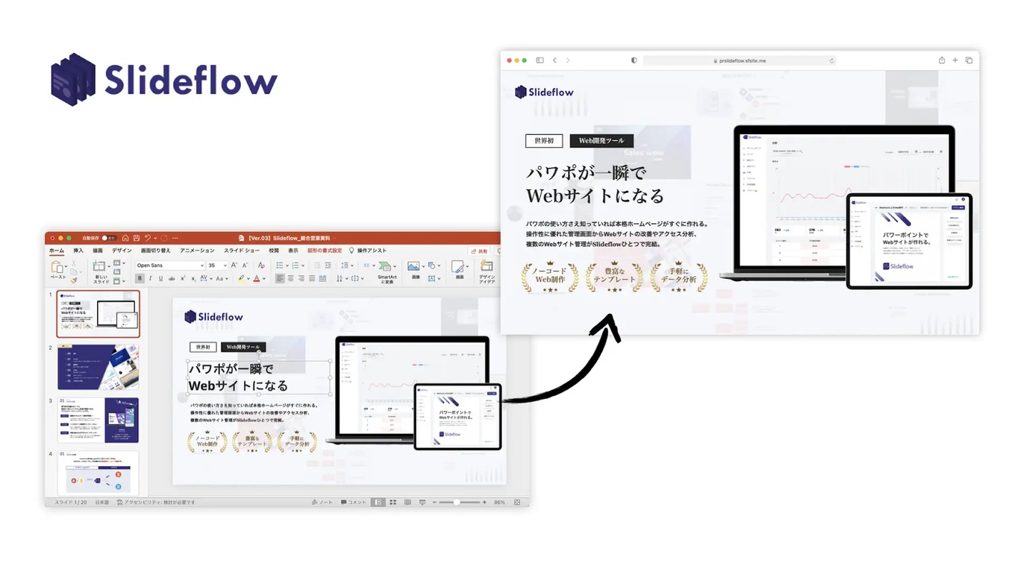 Slideflowも専門知識がない現場メンバーでもパワポからWebサイトを作れる、ありそうでなかった意外な組み合わせで夢のあるサービスを目指して開発しました。
