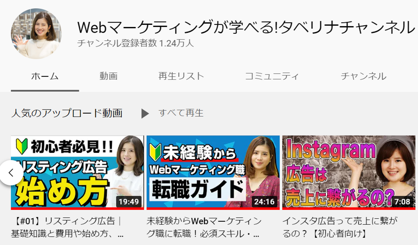 「タベリナチャンネルでWebマーケティングを学んでます!」