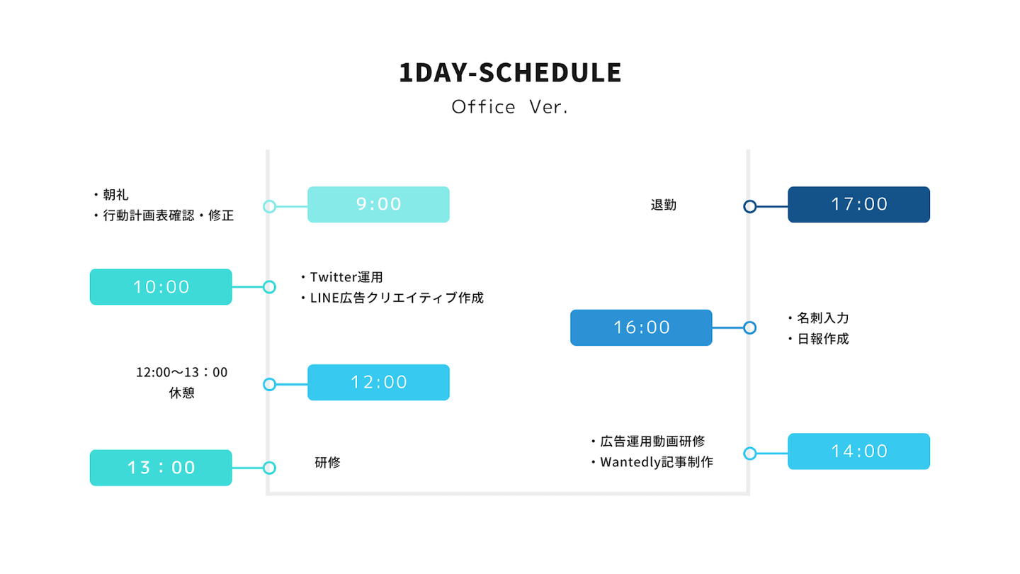 では、実際にインターン生の1日のスケジュールを見てみましょう!