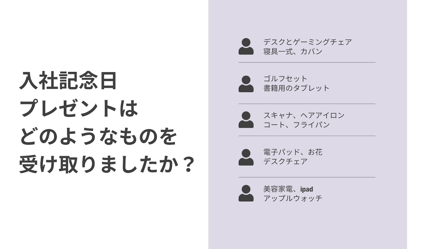 社内で結婚している割合が少ないので結婚祝い金を受け取っている社員は少ないですね~!