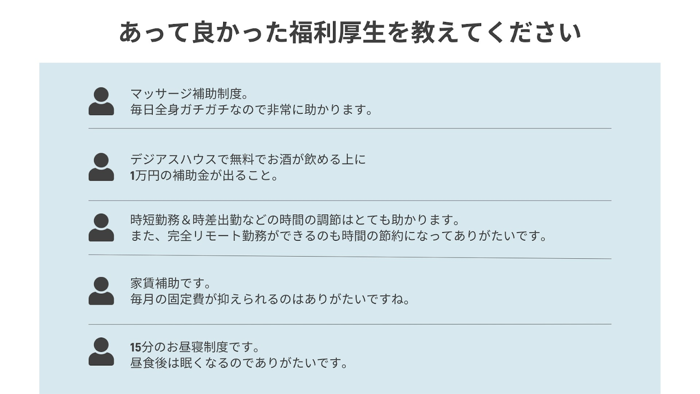 ここまで読んでくださった方はデジアスがいかに福利厚生に尽力しているかがお分かり頂けたと思います^^
