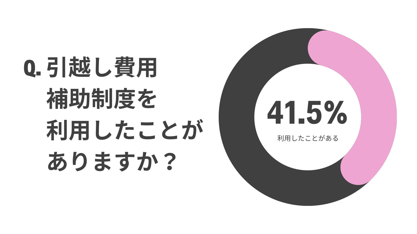 また、引っ越し資金制度や家賃補助はおよそ半数が受け取っているという結果になりました。