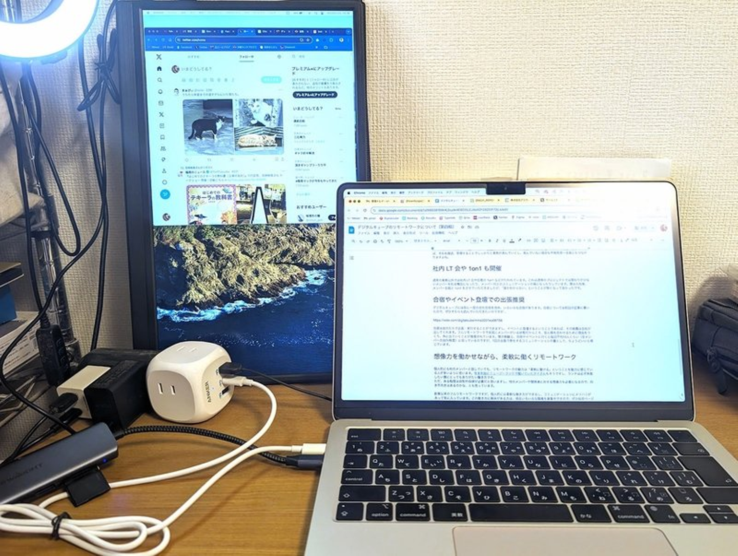 デジタルキューブではリモートワーク手当が毎月一律2万円支給されます。購入したものの経費精算が必要な制度ではなく、何に使ってもOKな柔軟な手当です。僕はコワーキングスペース的なオフィスと契約して場所を確保していますし、先日は持ち運びできる15インチのモバイルモニターを購入しました。