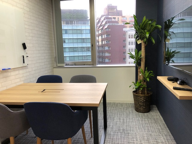 会議室は大小2つ。気軽にお客様や外出中の社員とTV会議ができるように、それぞれモニタを完備しています。窓からは渋谷道玄坂が一望できます。