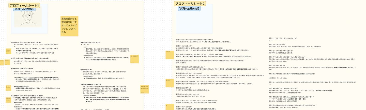 まずは「社内コミュニケーション」をテーマとしてメンバーにインタビューを実施。その結果、「その人をあまり知らないためコミュニケーション機会が減っている」ということが明らかに。(確かに最近、リモートワークを通して個々人の会話も少なくなってしまっているかも…。)