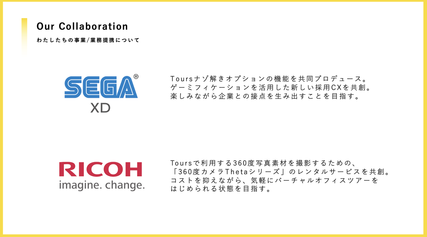 2023年度はリコー社とセガXD社の2社と当社のToursというSaaSプロダクト事業における事業提携を発表させていただきました。それぞれ狙いは異なりますが、当社だけでは実現できないことが実現できるようになることによって、より多くのお客様が満足度高くサービスを使っていただけるような内容になっています。