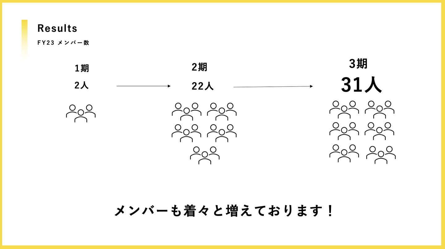 DINAMICAは2023年が3期目なのですが、売上右肩上がりの成長を組織も拡大を続けています。比較的ストレッチをかけた目標に対して、高い品質で仕事をしてくれたメンバーのみんなに感謝しかありません。来期以降はさらに大きな目標を掲げ、大きく成長を続けたいと考えています。