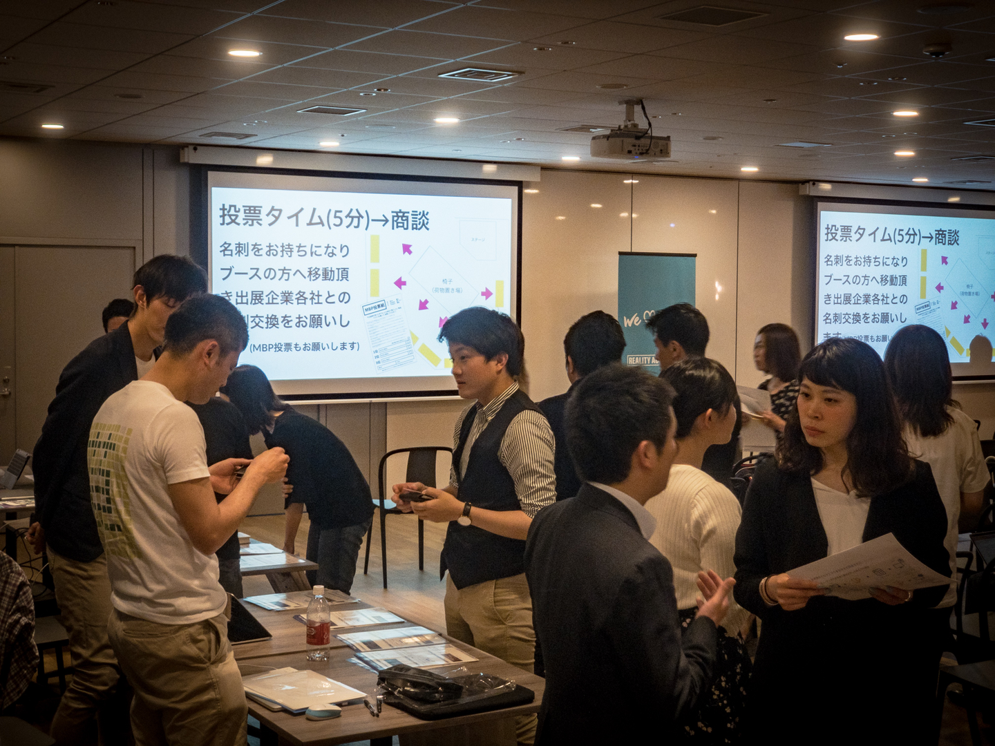 各社のピッチを踏まえて興味を持った会社のブースに参加者が続々と足を運び詳細を聞いていきます。名刺交換から始まり、具体的な料金の話や打ち合わせの話をしている姿があちこちで見受けられました。
