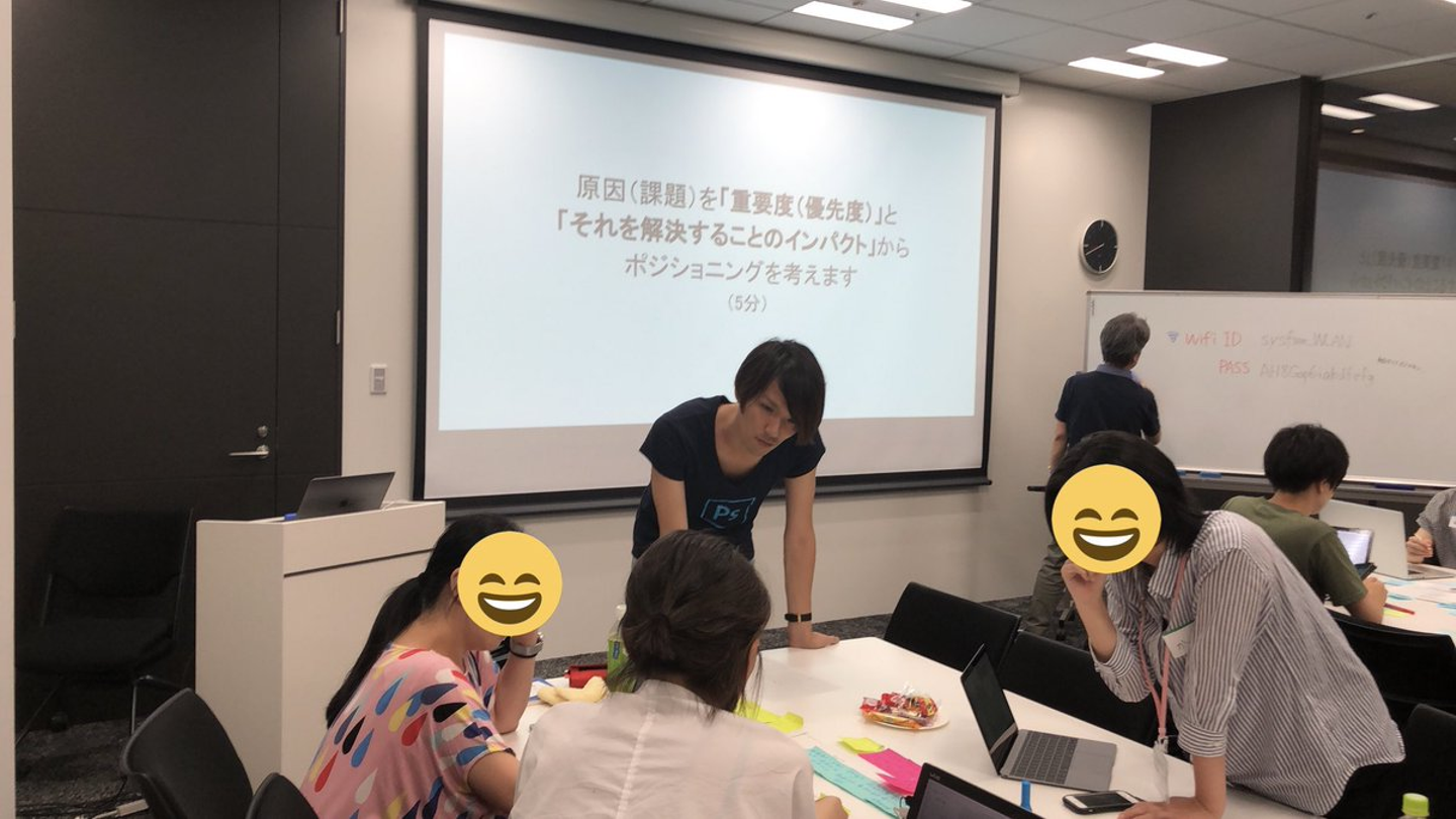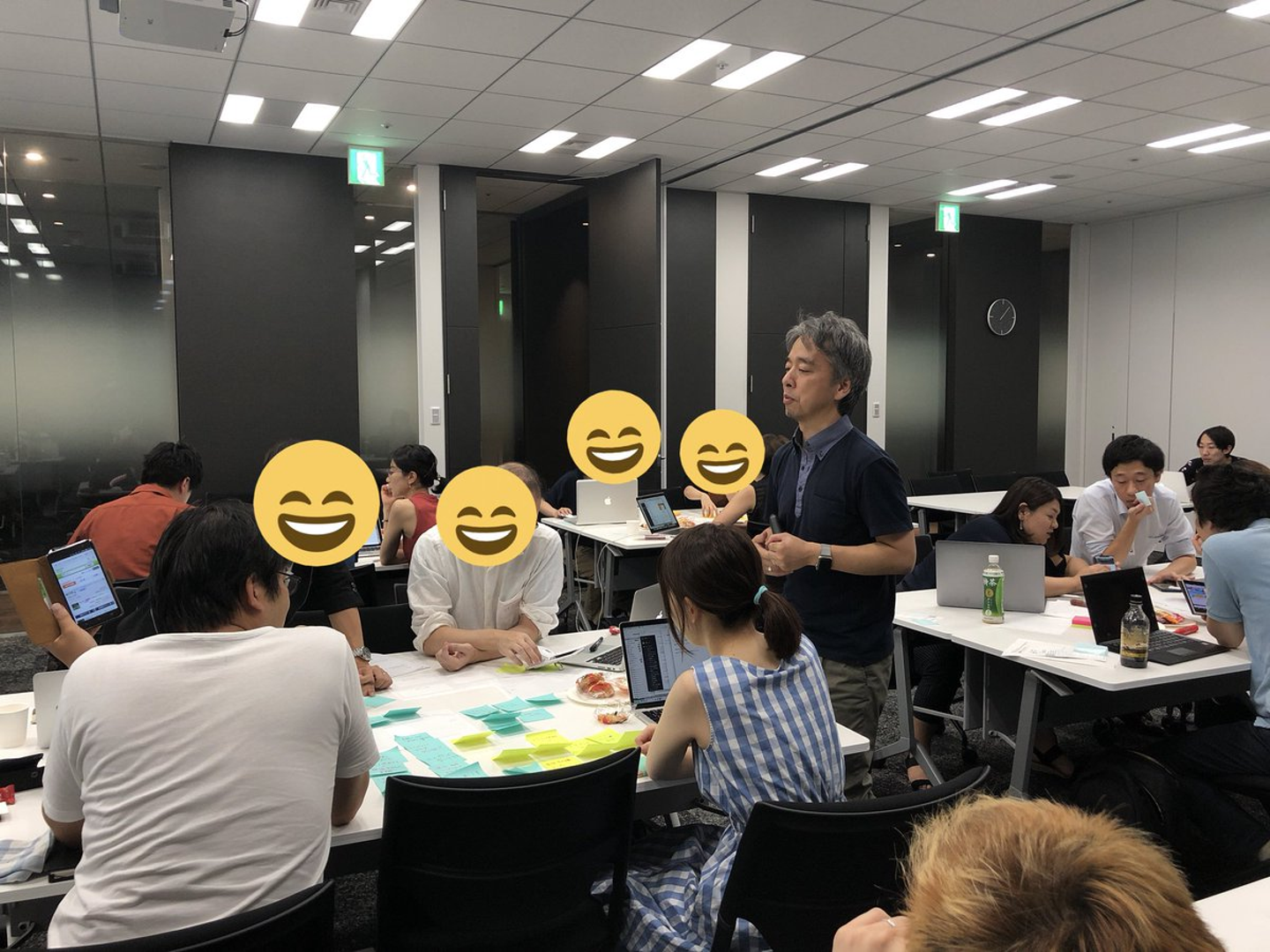 各グループのテーブルに集まって、プロトタイプの発表をしました。
