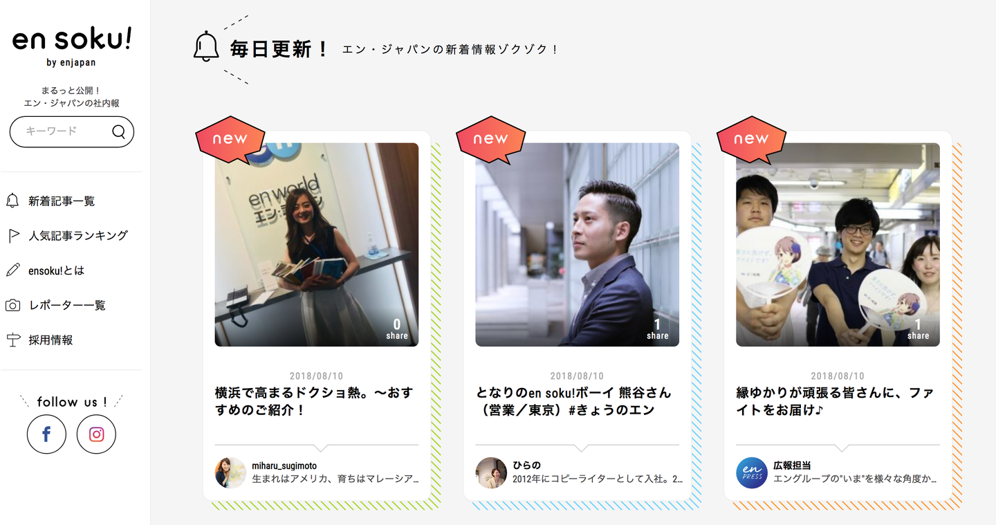 2015年5月には社内報『en soku!』を立ち上げ、運営2年で約1300本の記事を掲載、インナーコミュニケーションの活性化に取り組む。