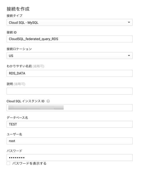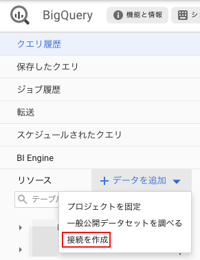 Connect_Retry: 60 BigQuery 接続を作成 いよいよ大詰めです。 BigQueryのコンソールから接続の作成を選択し、