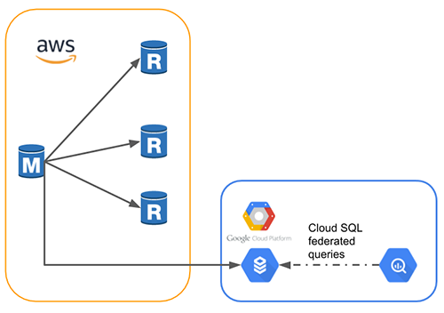 BigQueryからCloudSQLに直接クエリが実行 できるようになったということですが、サービスの基盤はAWSを利用しているためDBはもちろんRDS。。。 そこでどうにかしてRDSに溜まっているデータに対してBigQueryから直接クエリを実行したいと思いやってみました。 正確には、RDSをCloudSQLでレプリケーションしてCloud SQL federated queryでBigQueryからクエリを実行してみました。