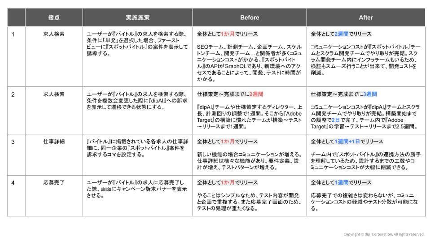 山下:『dip AI』や『スポットバイトル』など、革新的なサービスを市場に投入するだけでは不十分で、その価値をユーザーに正確に理解してもらう必要があります。私たちはユーザーに対して明確で魅力的な価値を伝えることが不可欠だと考え、今回のプロジェクトに臨みました。