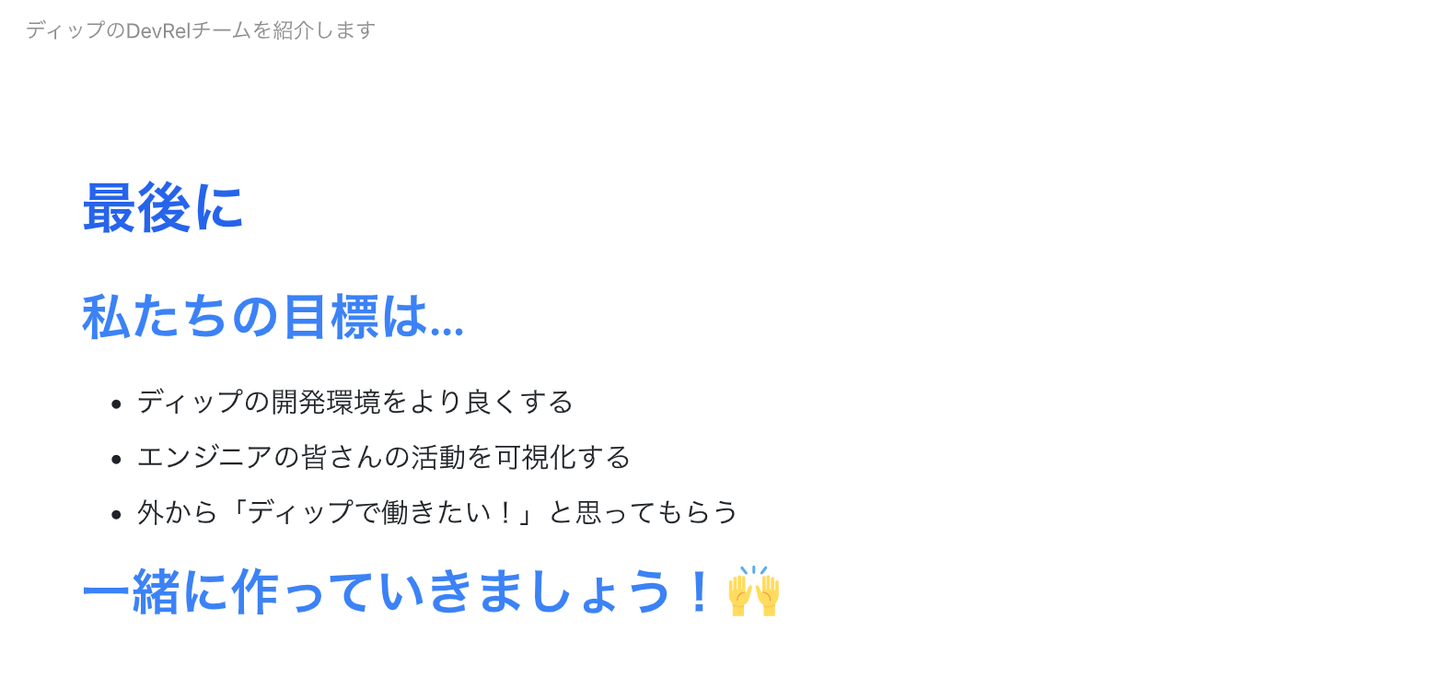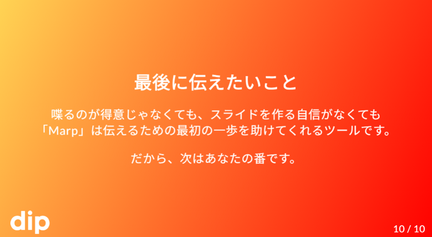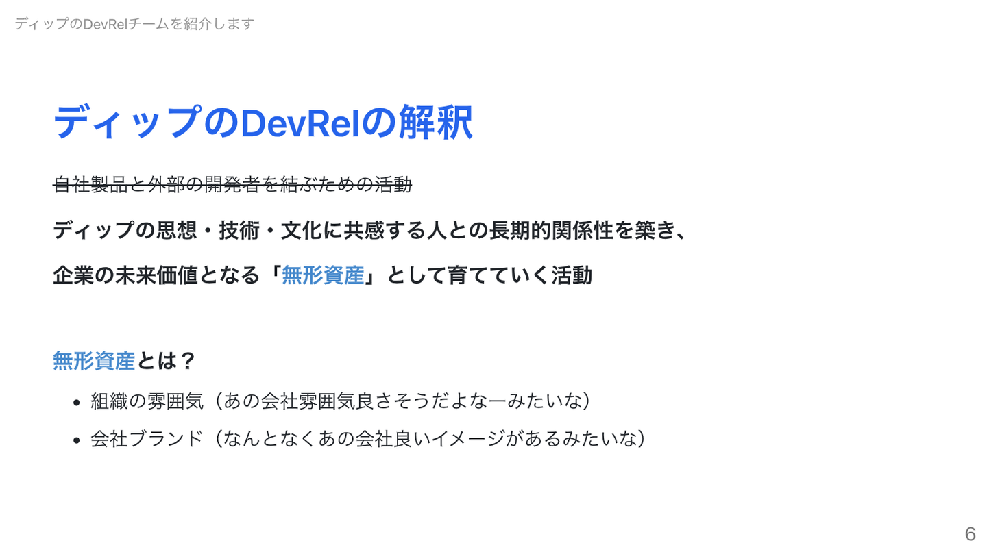 ディップのDevRelの定義を紹介してくれました。実はこれもMarpで作ったらしい…!