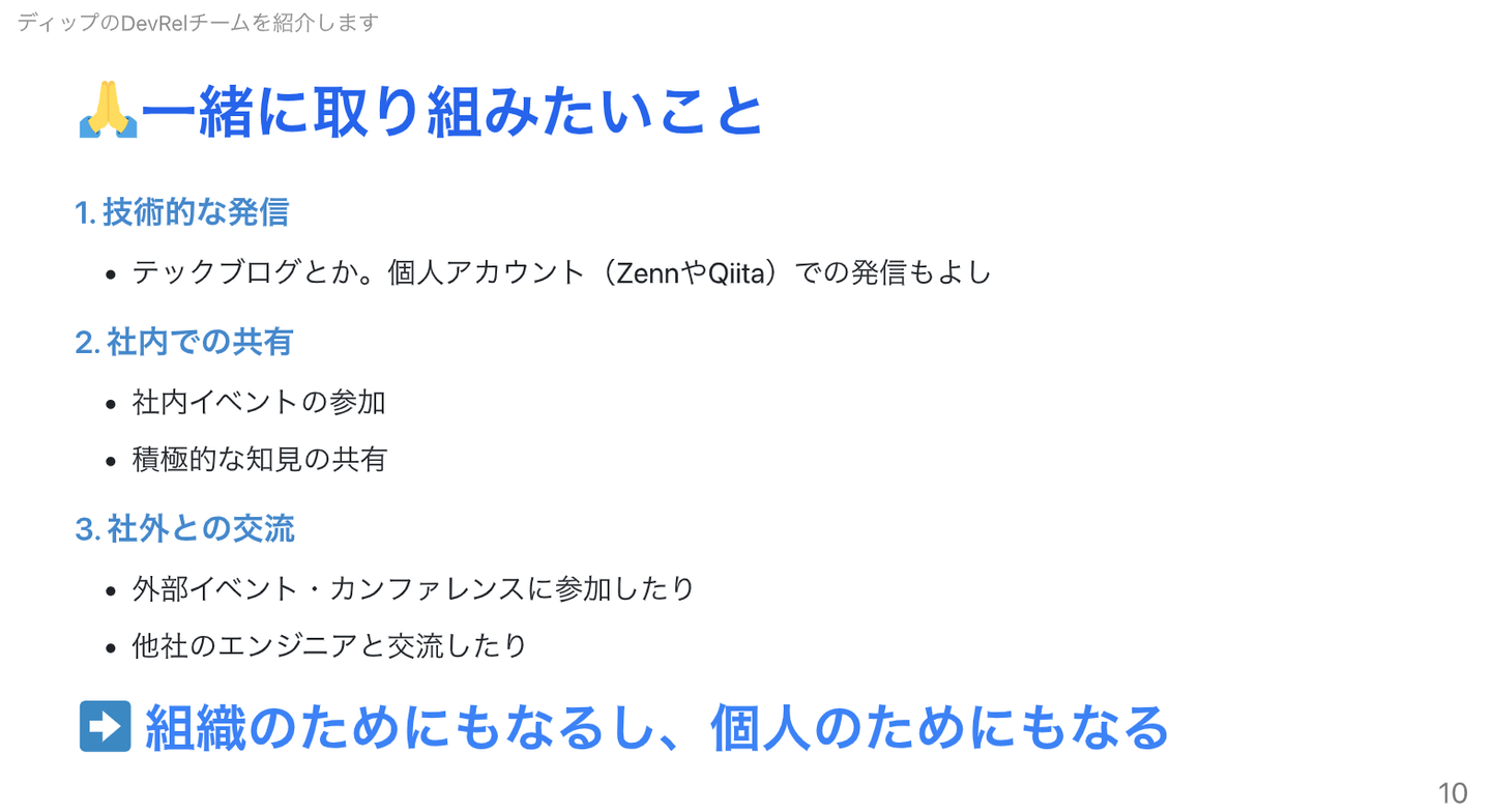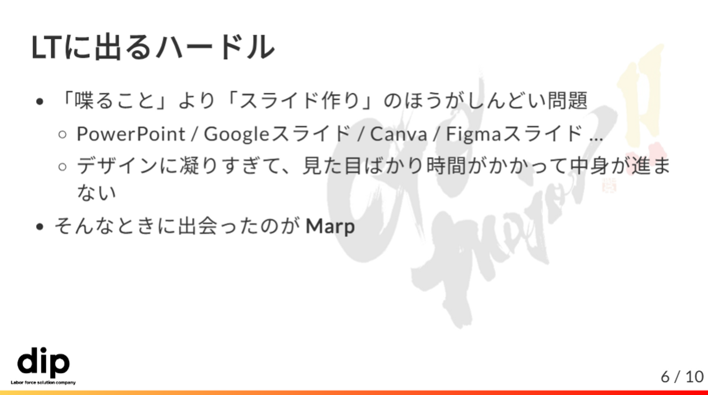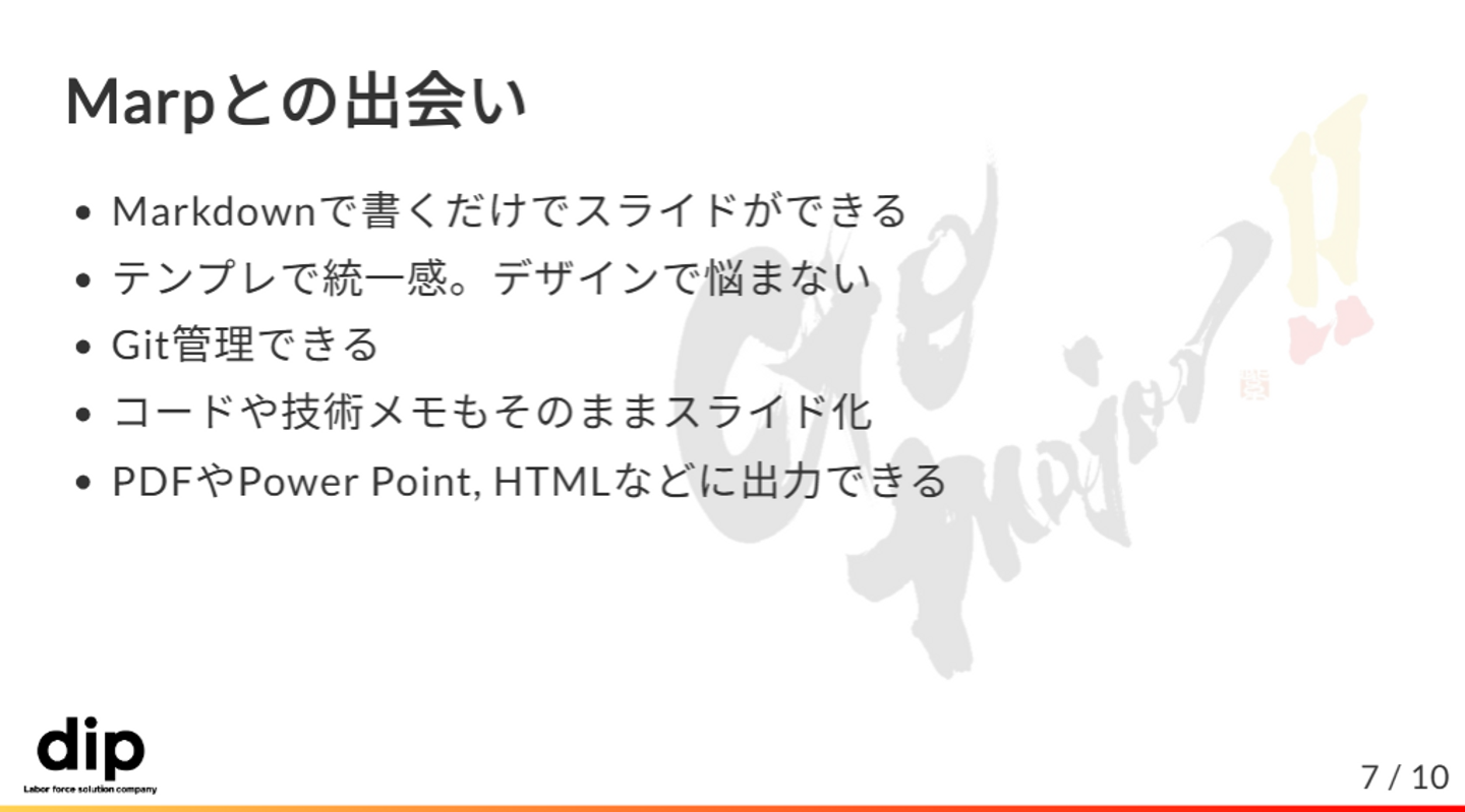 ディップのDevRelの定義を紹介してくれました。実はこれもMarpで作ったらしい…!