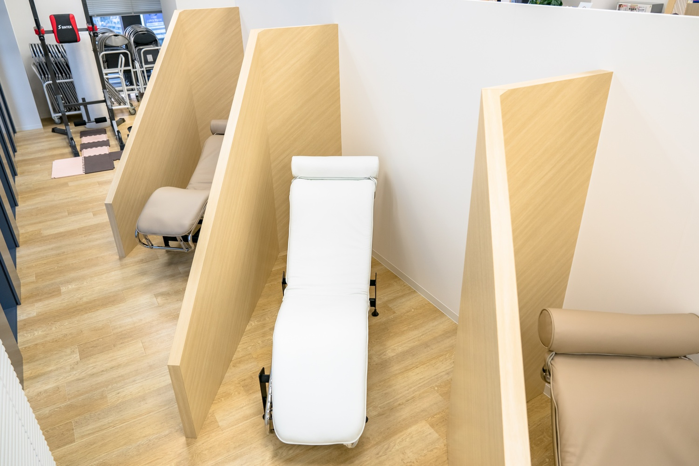 次は「交流」の場です。先ほどのエントランス部分よりも少し距離が近くなり、温かみを感じるようにしました。