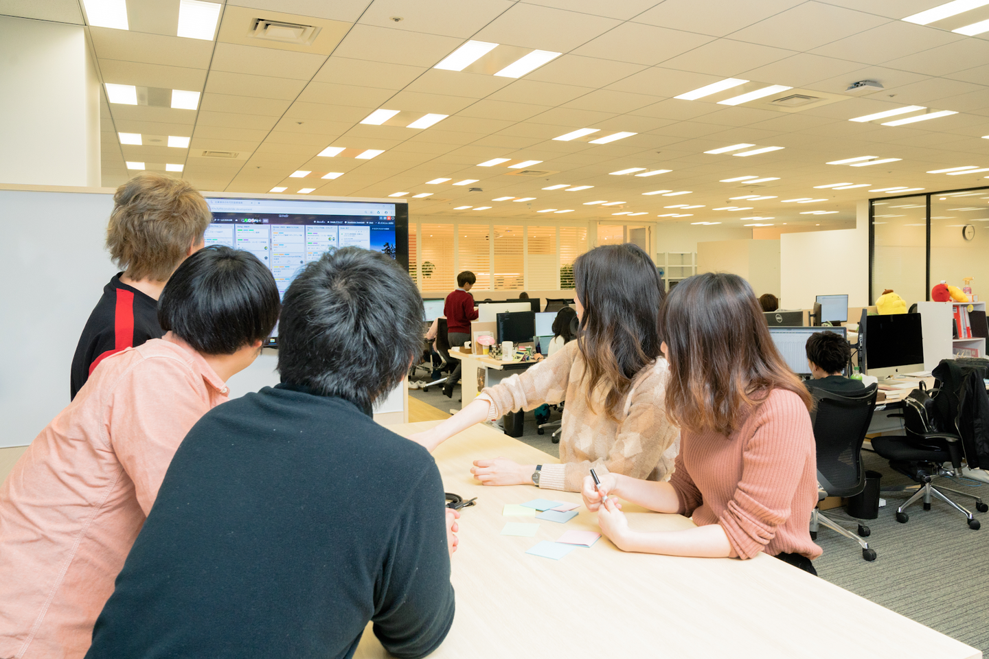 當眞:実際に完成したオフィスでは、各プロダクトチームの席の近くにOKRスペースがあります。執務スペース全体の3分の1をOKRスペースとして取っていますので、かなり広いですね。これからメンバーが増えても対応できるのではないかなと思います。スペースの使用用途はチームごとに異なるので一概には言えないのですが、目的に応じて活用されている印象があります。