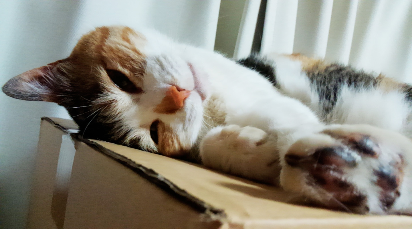 あと、飼っているスーパーセクシーキャット♀の写真もお届けします。寝てる時によくお腹の上を占拠されます。