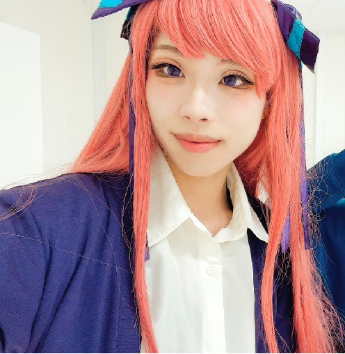 これは「〇等分の花嫁」に出てくる「中野〇乃」のイメージです。今まで女装したことなかったので、チャレンジしてみようと思い、一番好きな女性キャラに仮装しました!