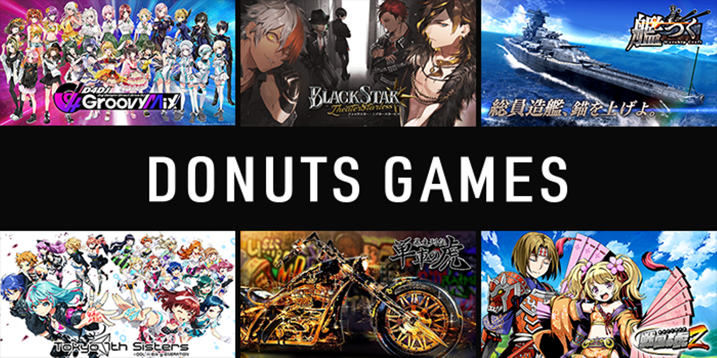 ◆ゲーム事業:DONUTS GAMES DONUTSでは「オリジナルゲームでNo.1を目指す」を目標に、「 暴走列伝 単車の虎 」「 Tokyo 7th シスターズ 」「 ブラックスター -Theater Starless- 」「 艦つく -Warship Craft- 」「 D4DJ Groovy Mix 」「 戦国の虎Z 」「 戦国の虎 」といったスマートフォンゲームの開発・提供を行っています。