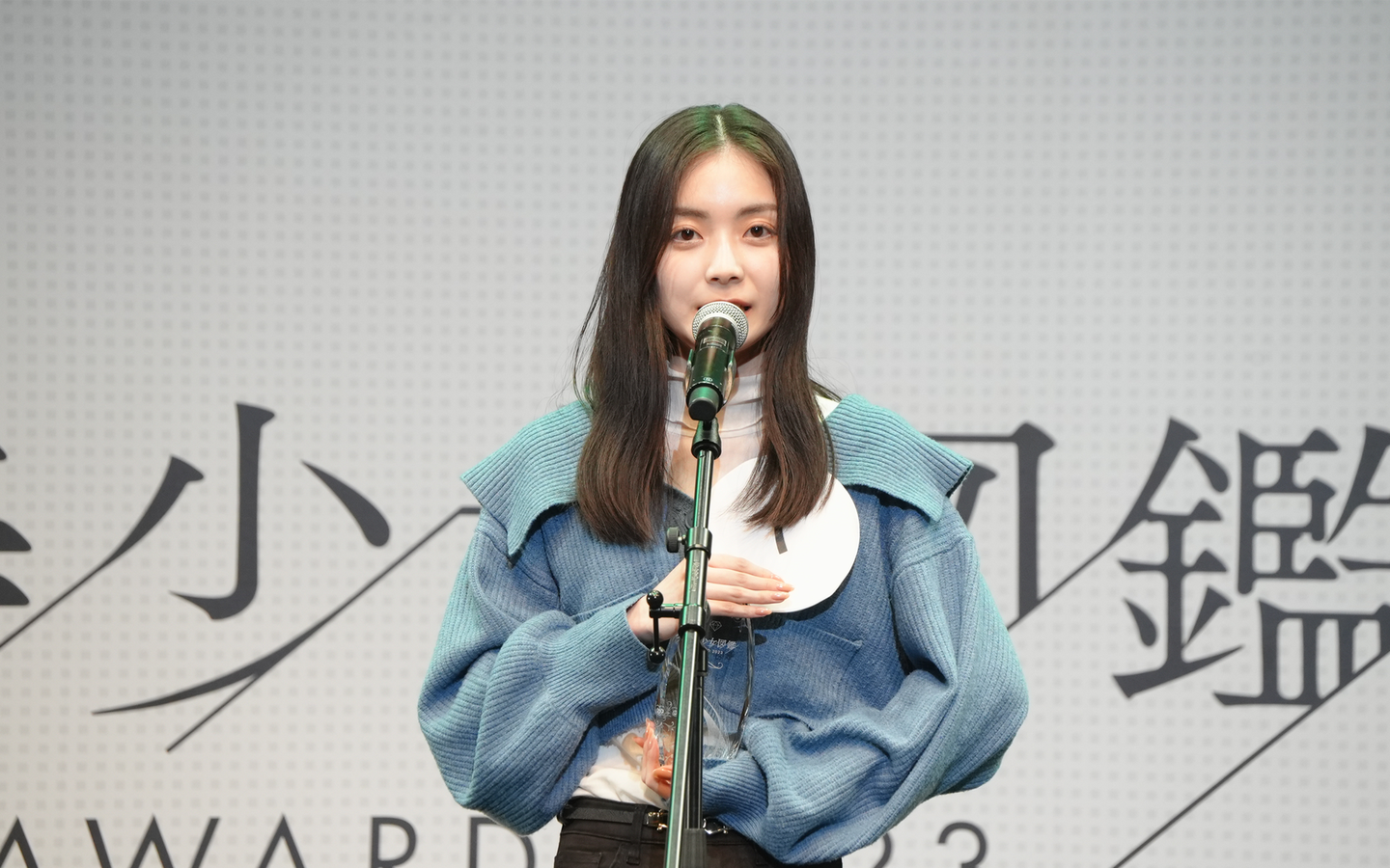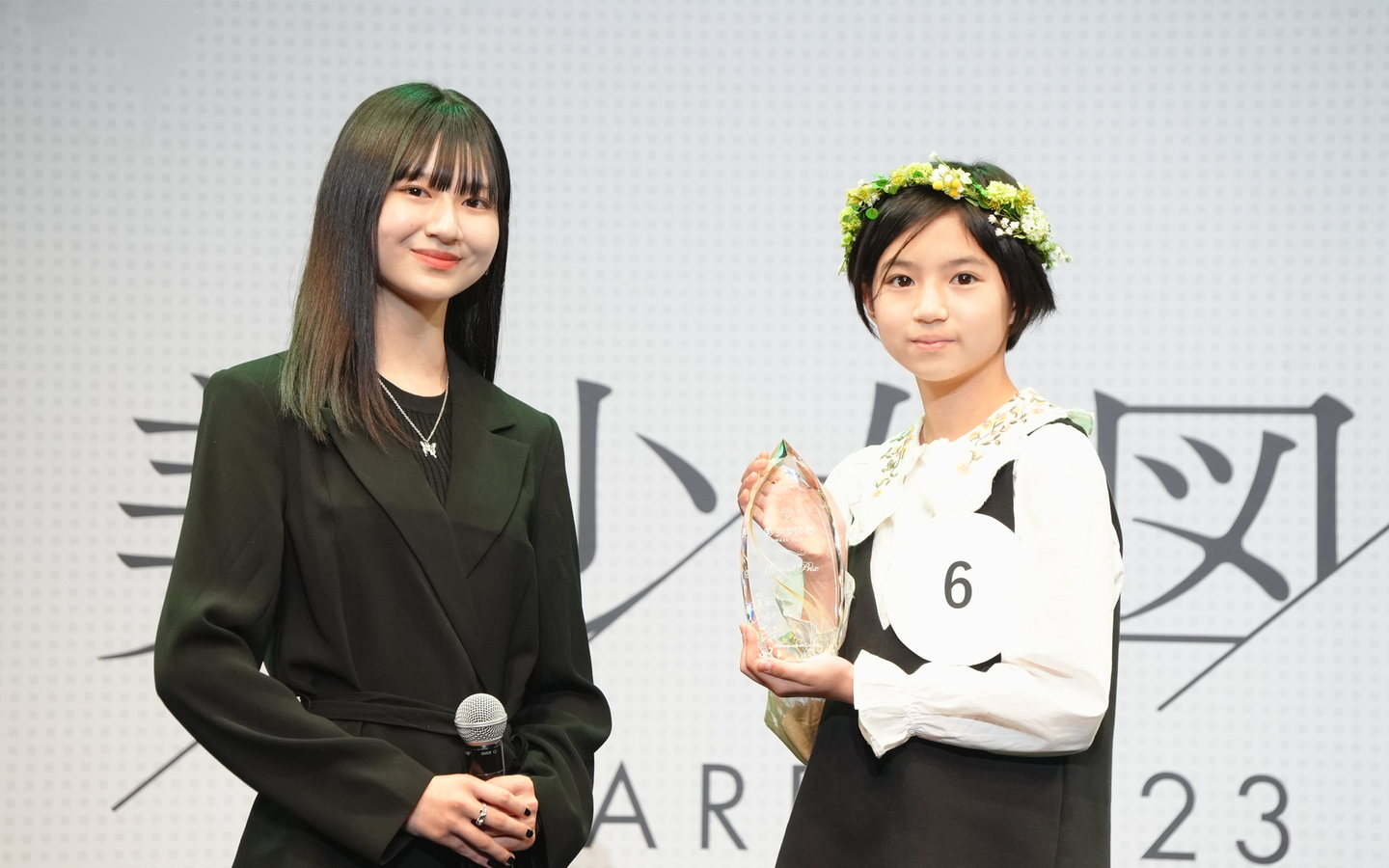授賞式後に行われた報道陣による囲み取材では、2日後に小学校の卒業式を控えたタイミングでの受賞であることも話題に。さらに憧れの存在を聞かれると、同じ中国地方出身で『美少女図鑑』の先輩でもある山本舞香さんと答える一幕も。