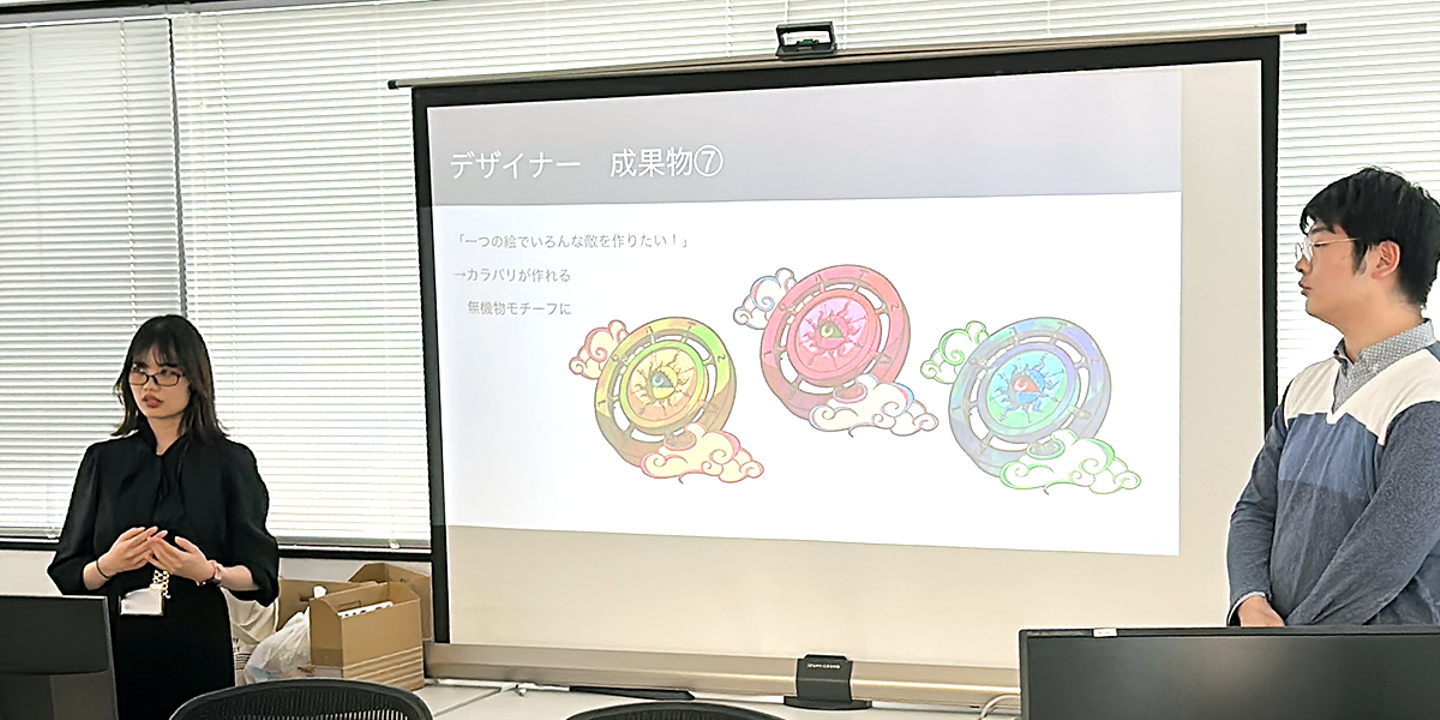 デザイナー分野では、発注から納品までの全体の制作フローについて、実際の成果物を交えながら紹介したほか、ユーザーを意識したUI作りの大切さを説明しました。